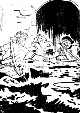 ទានហានទាំងពីរក៏ចូលទៅតាម។ អ្នកឃើញស្ងាត់ រួចងងឹតស្លុង។ បុរសស្ទាបៗចូលទៅ។ រូងកាន់តែជ្រៅទៅៗ។ ដៃដែលស្ទាបក៏បះឃើញមាត់ទ្វារដែលទើបនឹងបើក។ ផុតពីមាត់ទ្វារនេះ ស្រាប់តែមានពន្លឺចង្កៀងប្រេងកាតភ្លឺរន្ទាលពីបន្ទប់ខាងក្នុងមក។ ទាហានទាំងពីរដកដាវប្រថុយចូលទៅទៀត។ អ្នកបានឃើញរូងនោះធំ មានតុ ជើងម៉ា ស្អាតស្អំ តែមានពីងពាងព័ទ្ធដោយអន្លើ បង្ហាញអោយឃើញថា គ្មានមនុស្សនៅឡើយ។ គេព្រឺក្បាលខ្ញាកៗទាំងពីរនាក់ តែប្រុងខ្លួនជានិច្ច។ ទាហានម្នាក់ទៅលើកយកចង្កៀងមួយមកដើរលបៗមើលនាយអាយរកច្រកទៅមុខទៀត។ លុះទៅដល់តុតូចមួយនៅកៀនឃើញមានសំបុត្រមួយសរសេរថា "ដើរបីជំហានពីតុនេះទៅខាងឆ្វេង នឹង ឃើញពាងទឹកមួយ លើកពាងទឹកនោះឡើង នឹង ឃើញសំបុត្រមួយទៀតដែលអាចនាំផ្លូវទៅមុខទៀតក្នុងរូងនេះ"។